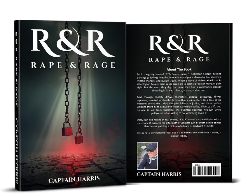 This book, “R & R: Rape & Rage” by Captain Harris, captures a dark, gripping story that pulls you in from the first page. It delves into real-life horror, exploring the chilling events of the 1970s in Washington County, Pennsylvania, and examining the human psyche’s depths. You’ll find a blend of fact and fiction, haunting and thought-provoking.